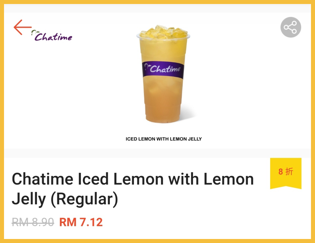 ▼③ Chatime Iced Lemon With Lemon Jelly(Regular) —— 只需RM7.12