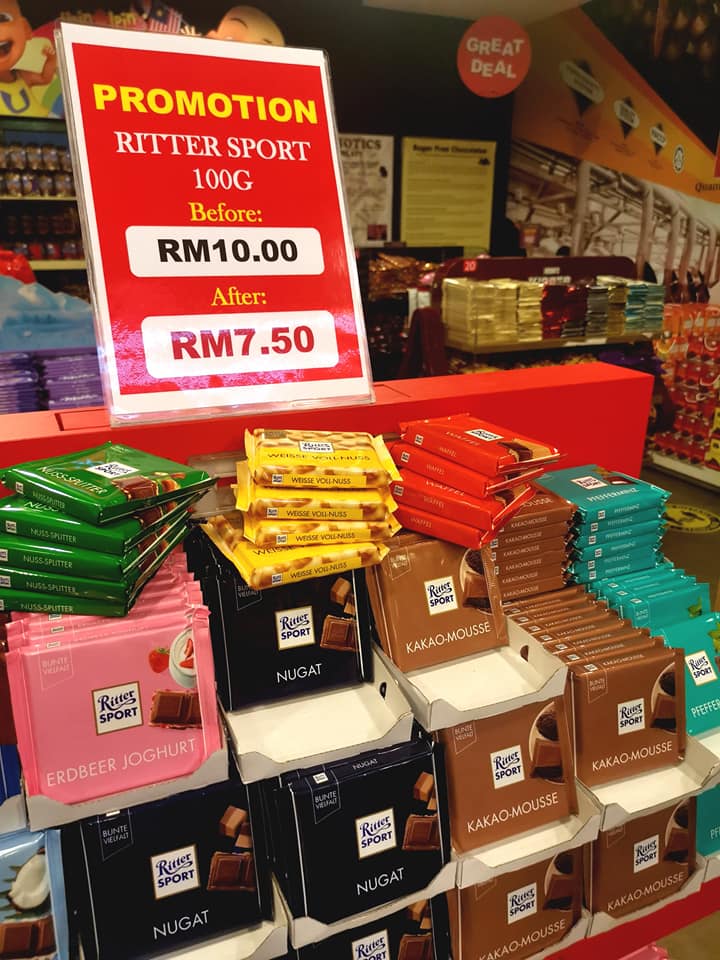 不管是 Ritter Sport、Pepero、Calbury、Nutella、Daim、Hershey’s等品牌的巧克力,统统都享有优惠价格哦!
