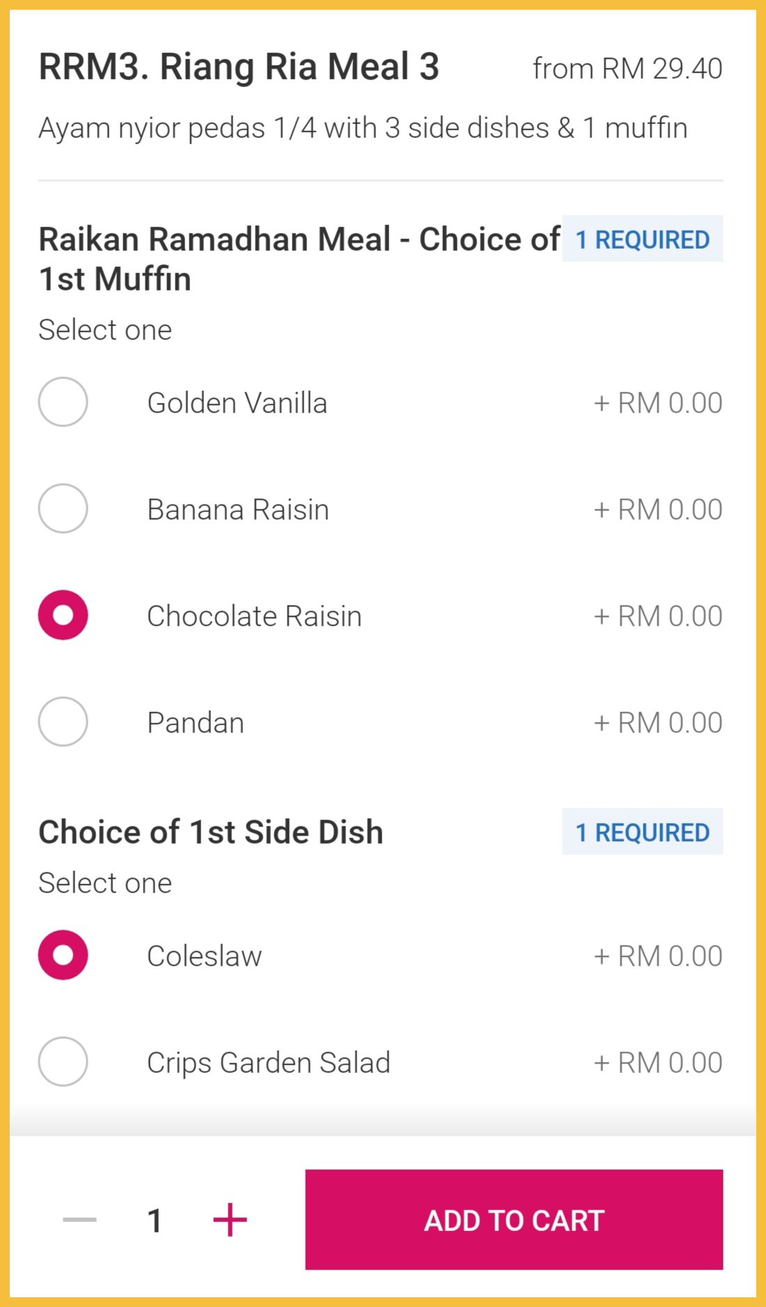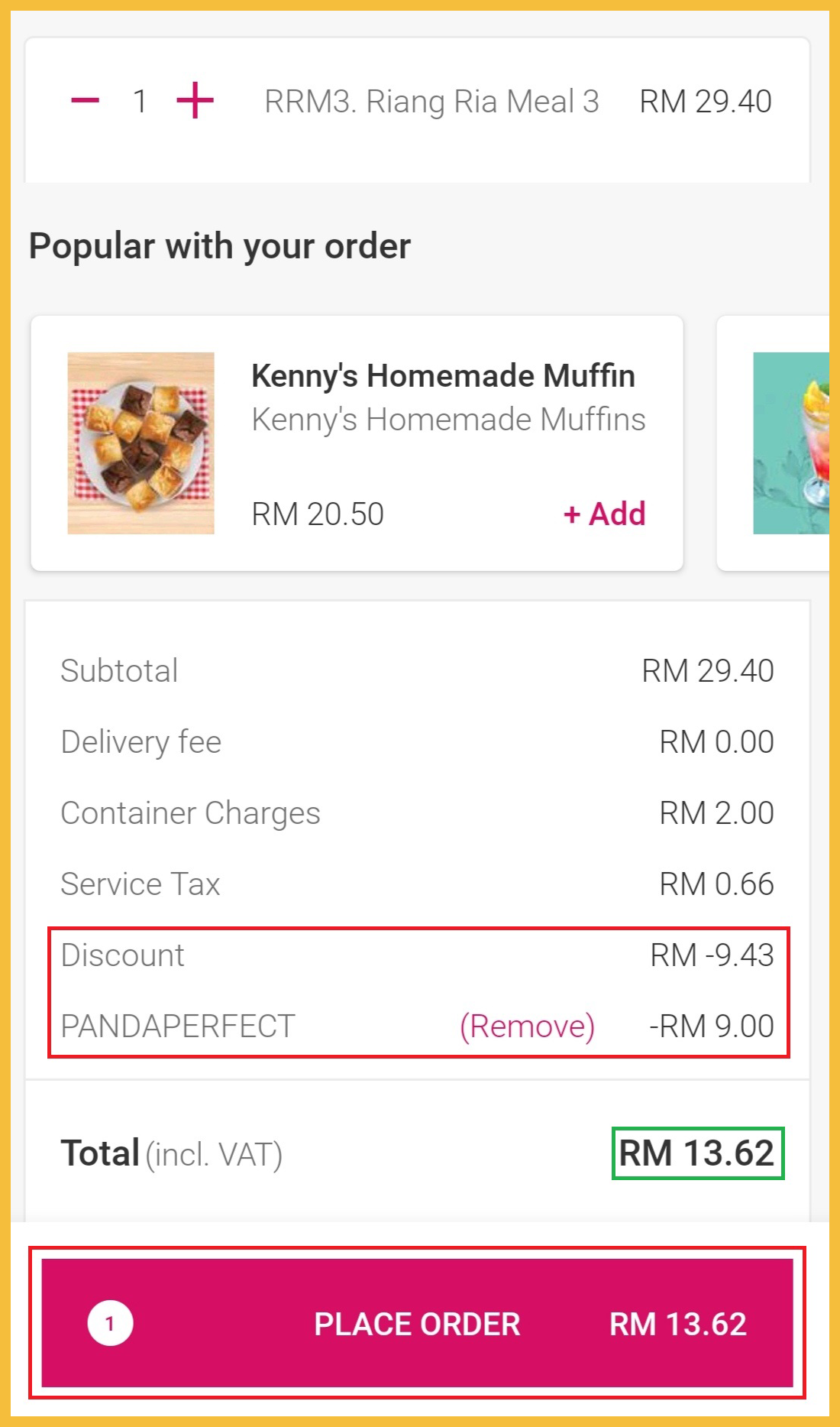 ※ 一份 1/4 烤鸡套餐原价RM29.40 折扣50%+折扣RM9后只需RM13.62!(注意:每个地区都会征收不相同外送费用)