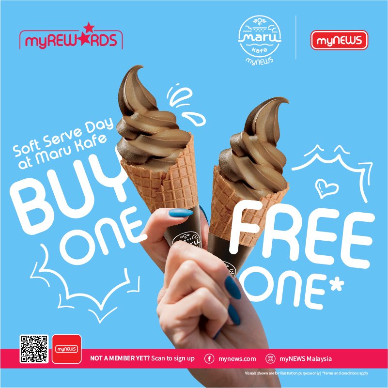 从即日起至 7月25日,只要你是 myNEWS 会员就可享有雪糕买一送一!任何口味雪糕!