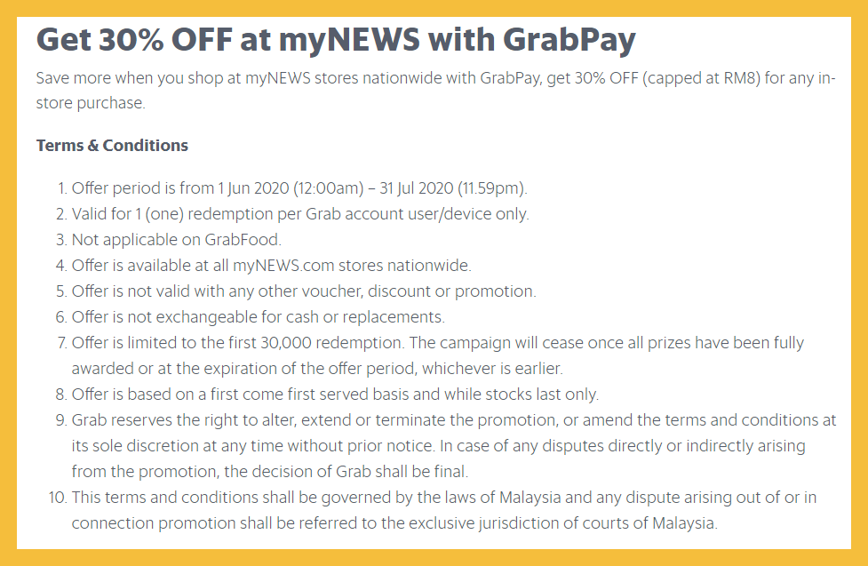 还一件好消息要告诉你~只要你使用 GrabPay 电子钱包付款,可额外折扣30%(最高可折扣RM8)!