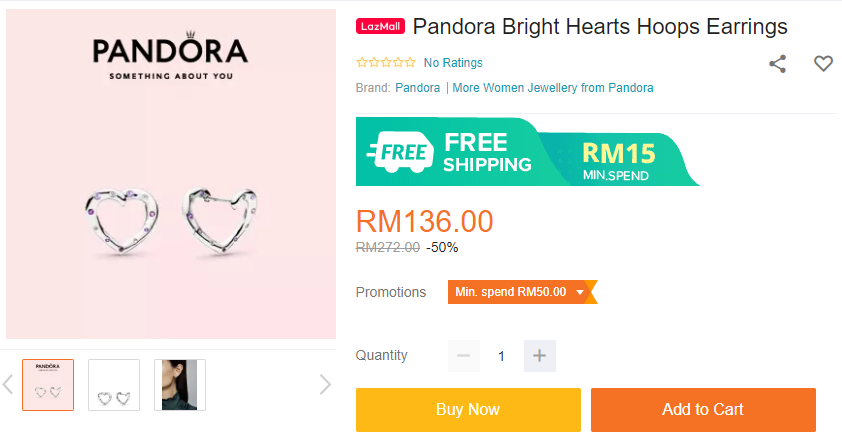 不过,这项优惠是在Lazada 的 Pandora 官方网推出的促销!话不多说,我们来看看有哪些优惠款式的饰品吧!