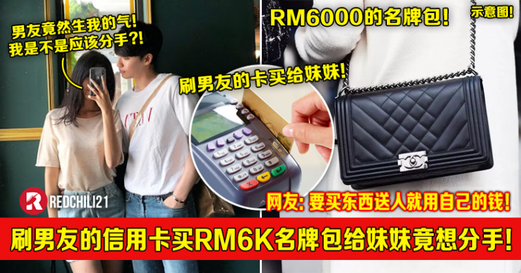 新加坡一名女子近日在社交媒体发文抱怨自己的男友,用男友的信用卡买了6千多块的名牌包送给妹妹结果让男友生气,女子大感不解要跟他提出分手!