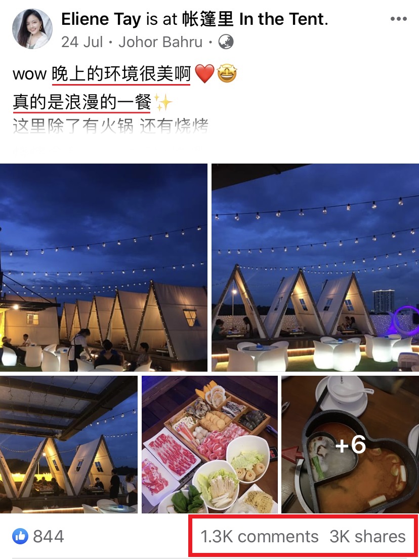 Eliene 通过面子书分享一家位于新山的“帐篷火锅”,该帖文立刻引起网友们的高度关注,超过3千人疯狂转发!