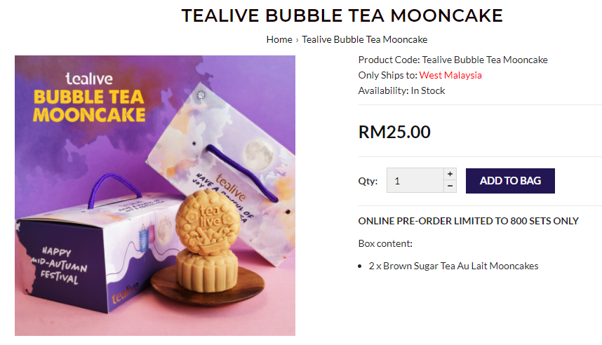 ▼ 你可浏览到Tealive 官方网【点击这里】进行线上预购!售价为RM25,一个礼盒共有2粒珍珠奶茶月饼!