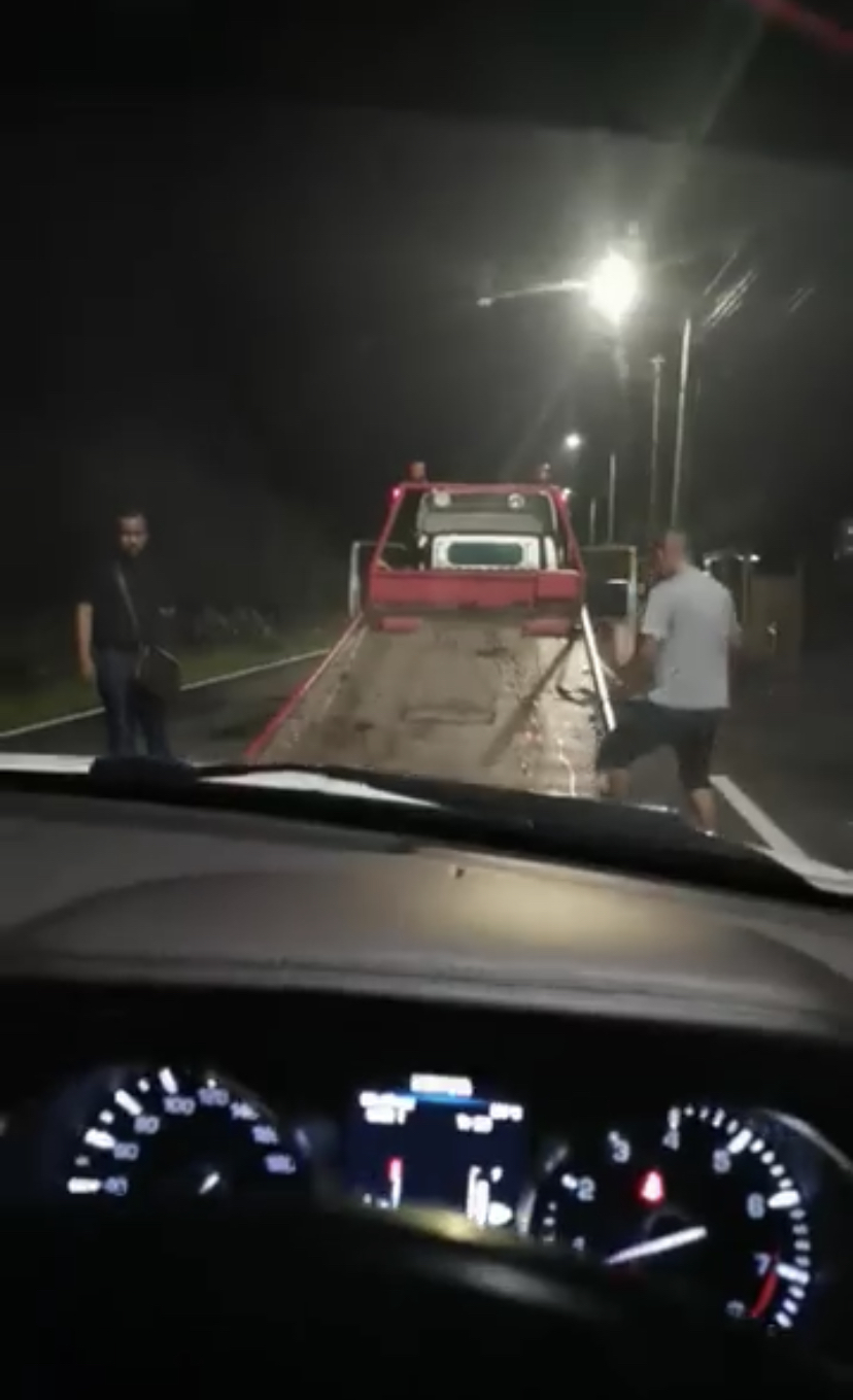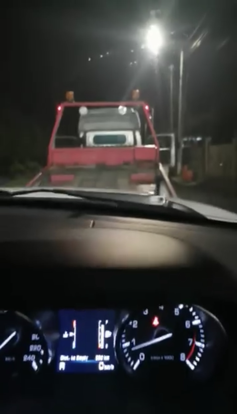 为了不害己又不害人,这名来自麻坡的男子想出了一个别出心裁的好方法:既然找不到代驾,就找拖车!