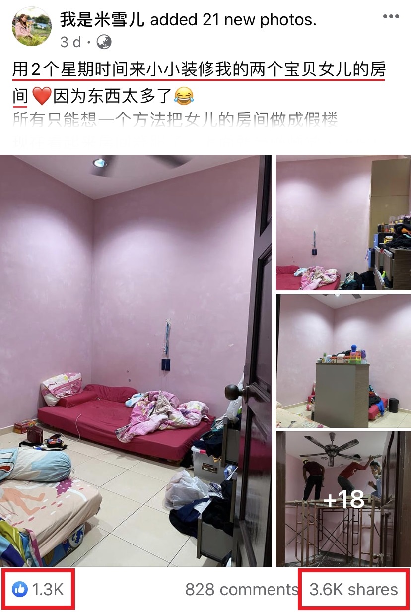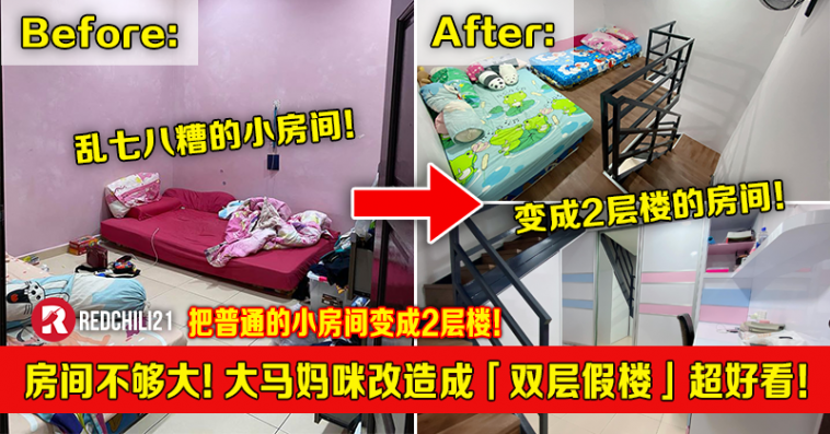 近日一位大马妈咪 Michelle 在面子书发文分享,利用自己的构思将孩子的房间装修成双层假楼!该帖文在短短3天内就获得3千多人转发!