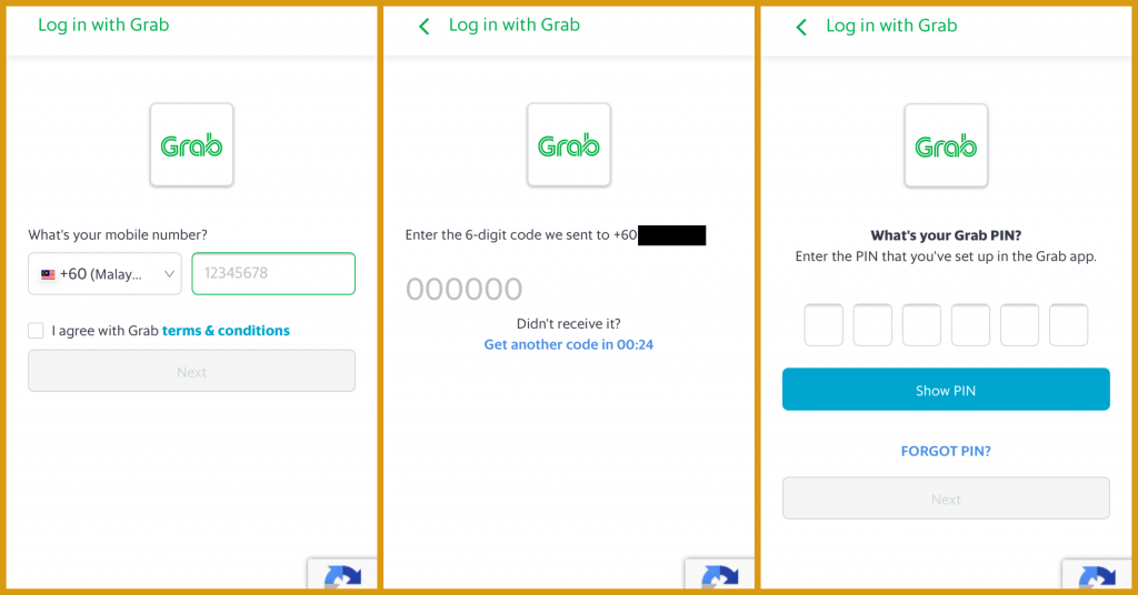 Step 6: 填写电话号码来获得验证码然后登陆Grab