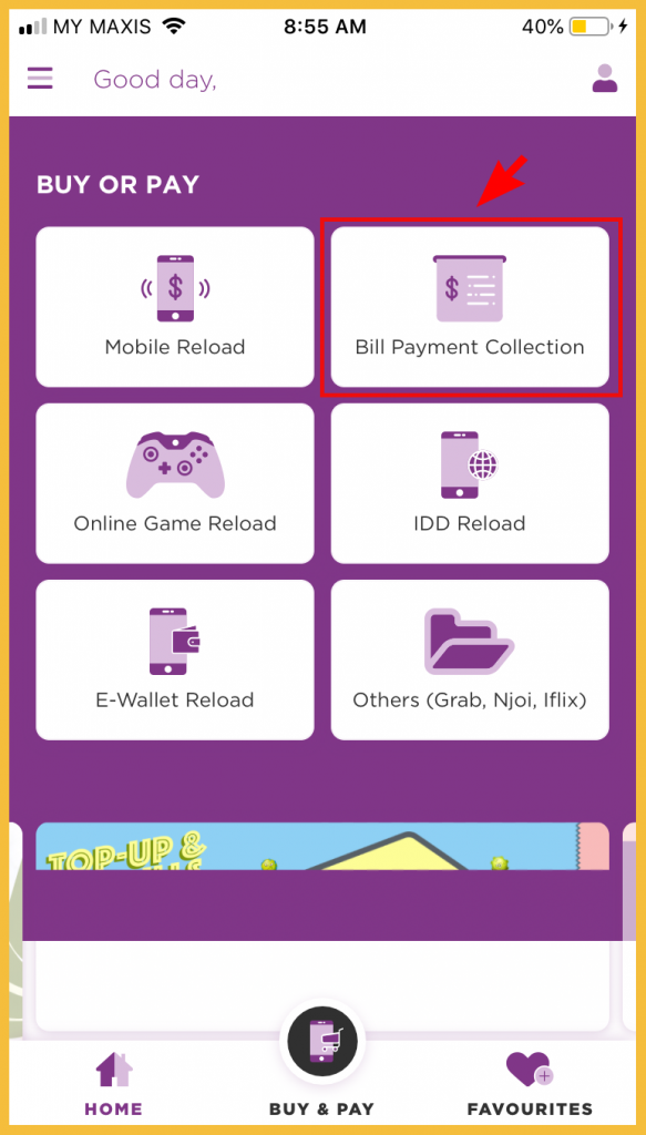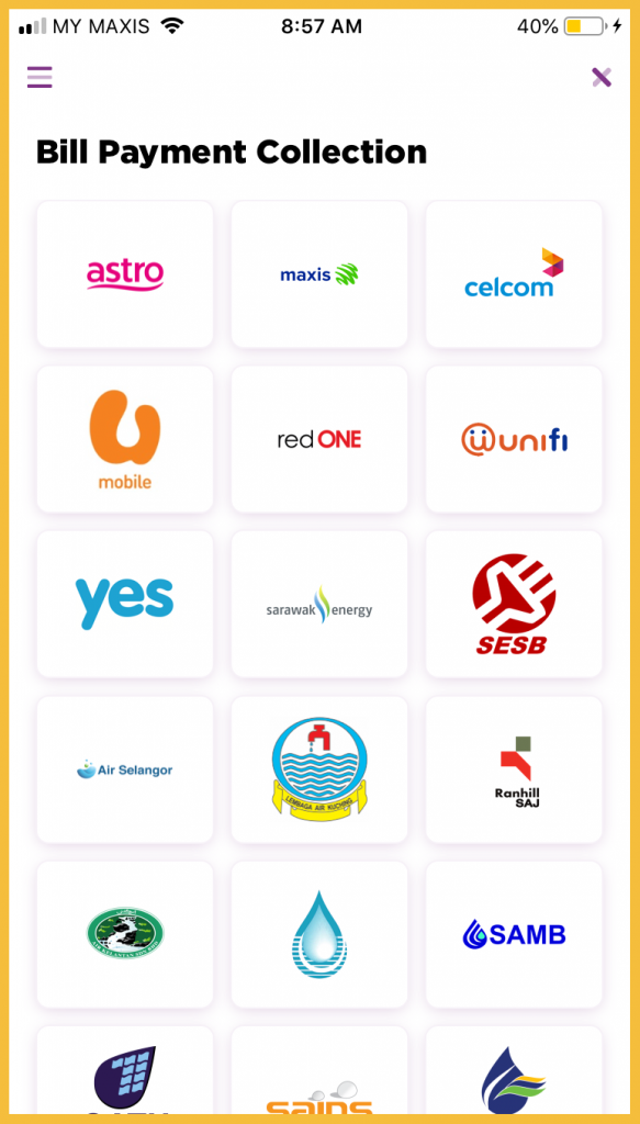 Step 4: 选择你要付的水电费选项 (比如Maxis账单)