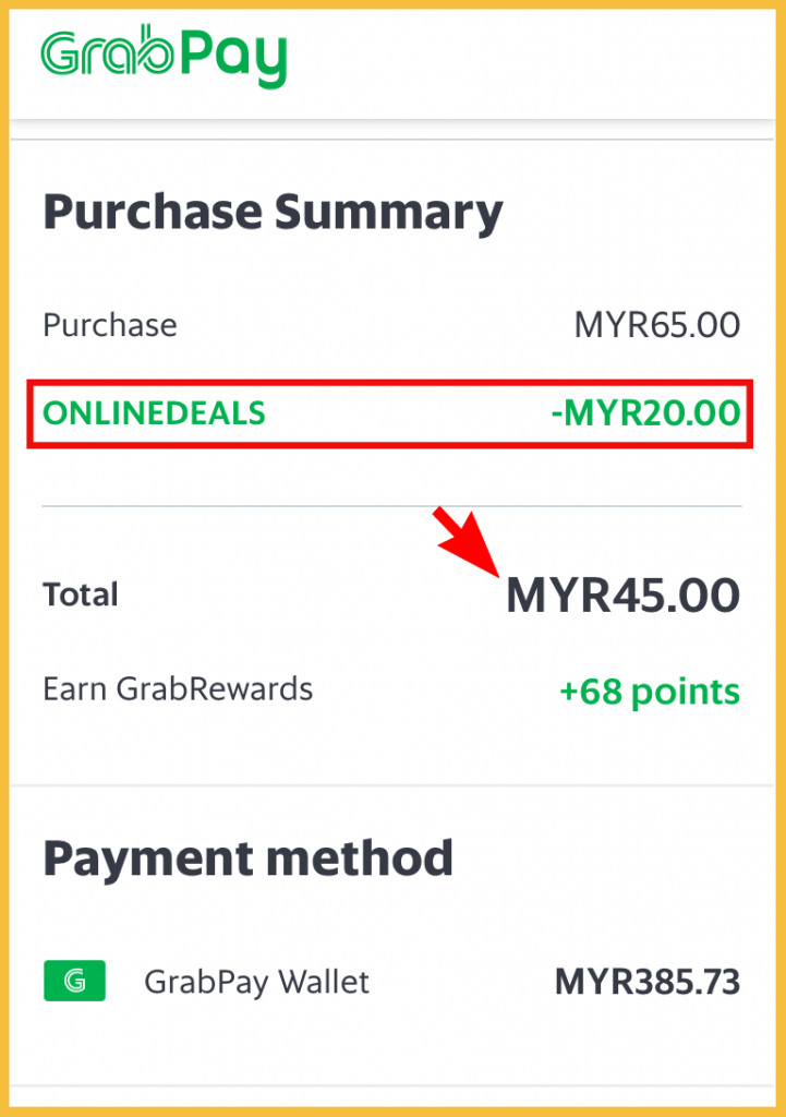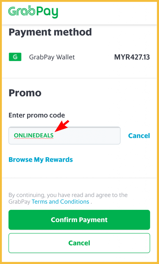 Step 7: 输入GrabPay 31% 折扣码【ONLINEDEALS】
