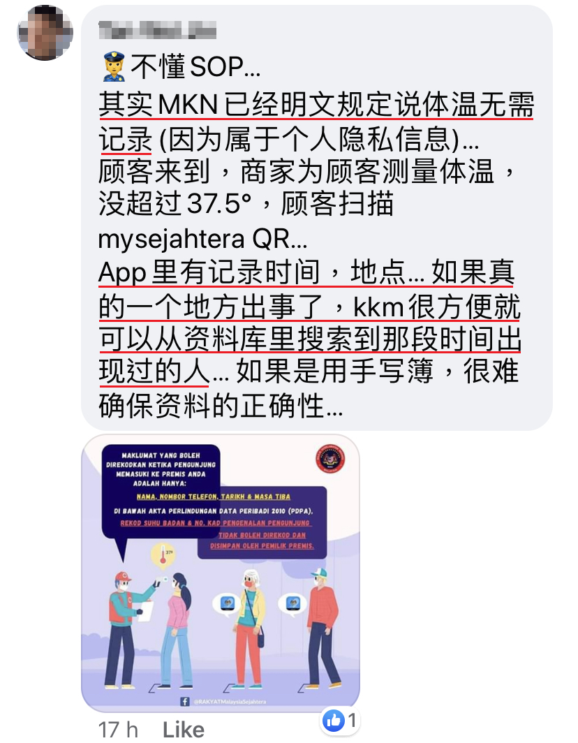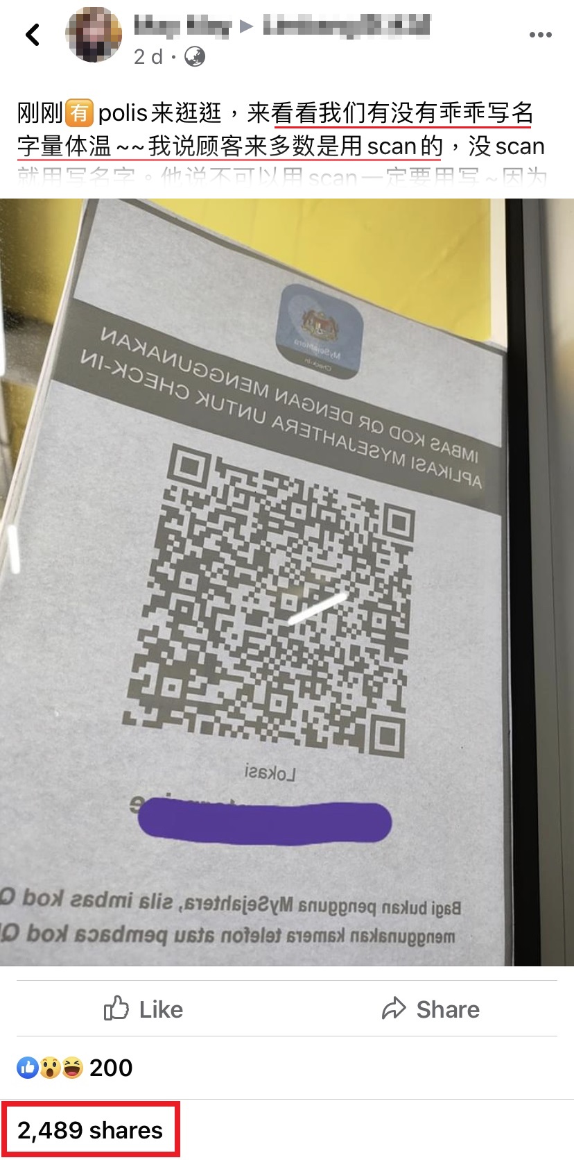 然而近日一名网友在面子书群组发文,指警方到他们的店里巡查时说若顾客只有 MySejahtera App,而没有登记记录簿,店家就将被罚款!