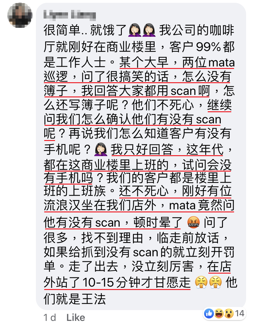 为了确保商家和消费者都有乖乖遵守SOP,早前警方甚至到咖啡店进行突击检查,发现违反者就当场开罚单。