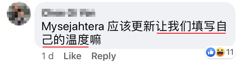 ▼ 希望 MySejahtera 可以更新,让用户填写自己的温度!