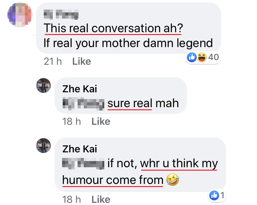 贴主 Zhe Kai PO文写道: 「这就是亚洲的父母。」并发了一张 WhatsApp 聊天记录的截图。短短不到一天内,该帖文就累计多达7000次分享和2千多人点赞!
