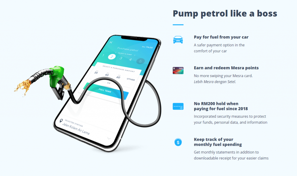 使用Setel 应用程式不用进去油站柜台排队就能添油,而且还可以赚取Mesra 的积分!