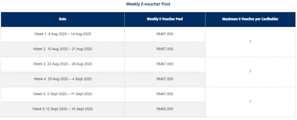 - 10 Aug 至 9 Sept 2020期间——可获得1次(RM5)现金回扣