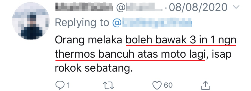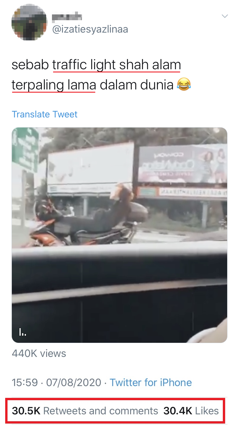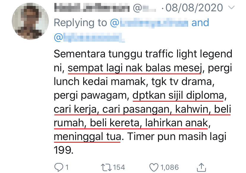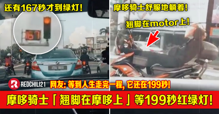 一名大马摩哆骑士就被拍到在等199秒红绿灯的时候,把腿翘起来舒服地躺在摩哆上。该视频在 Twitter 爆红,多达60,000人点赞和转发!