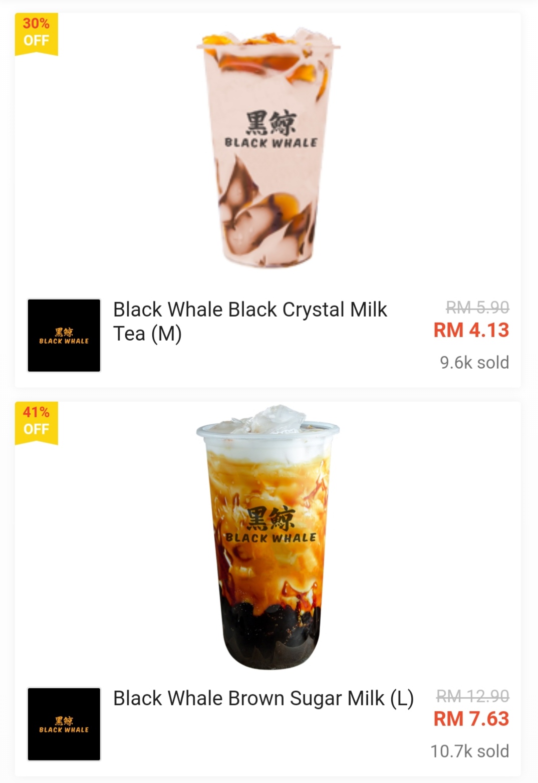 ② 黑鲸 —— 饮料最低只需RM4.13