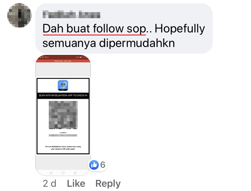 有了 MySejahtera 的二维码,我们就能够让前来的宾客更加方便和省时,前来参加宴会或光顾店铺的人只需使用 MySejahtera 系统扫描就可以啦~