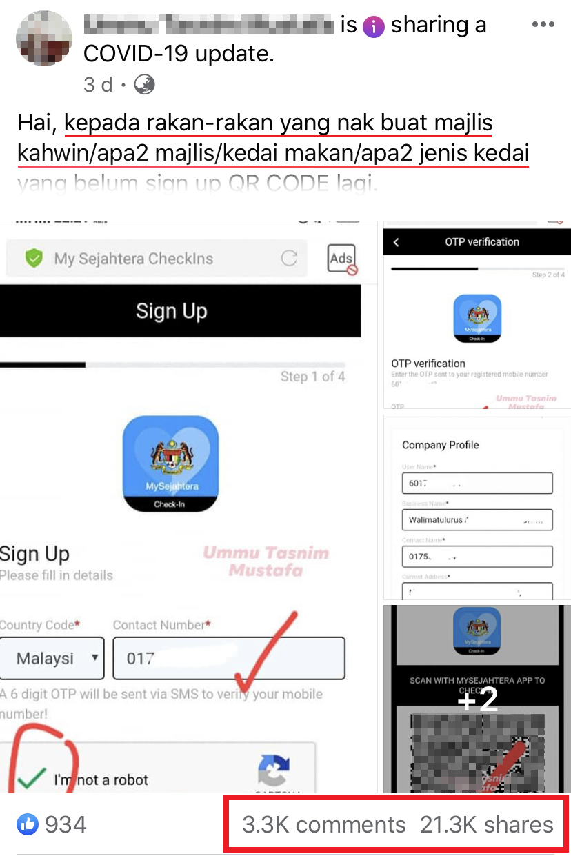 然而,你知道如何上网注册 MySejahtera 获得二维码吗?近日一名大马网友就通过面子书发文教大家如何注册,只需简单的几个步骤就可以完成了哦!该帖文在短短3天内就超过2万人疯传!