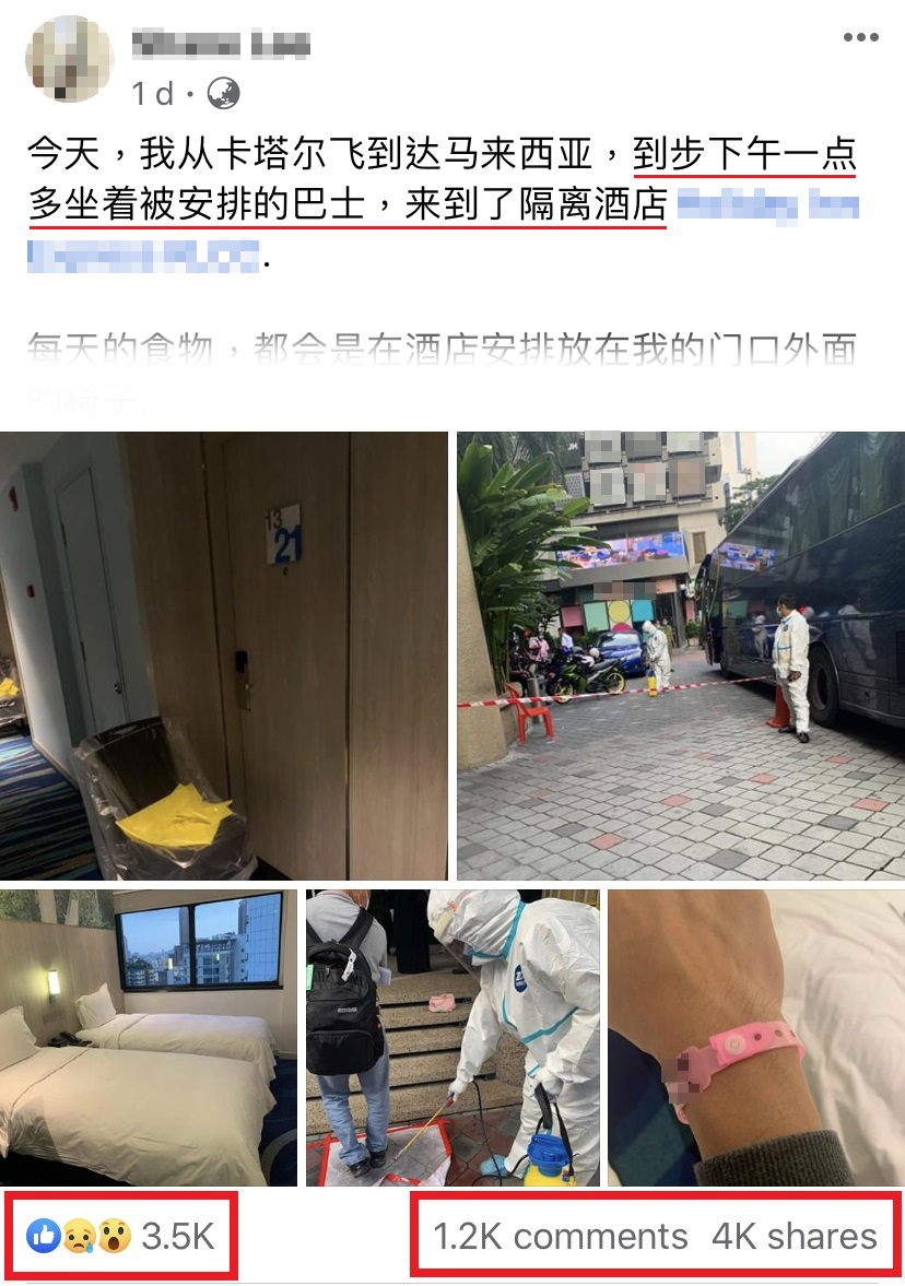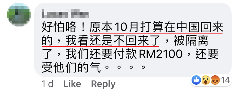 自付隔离费用RM2100的待遇让大马男子超无语!网友:付费的隔离还惨过免费的!