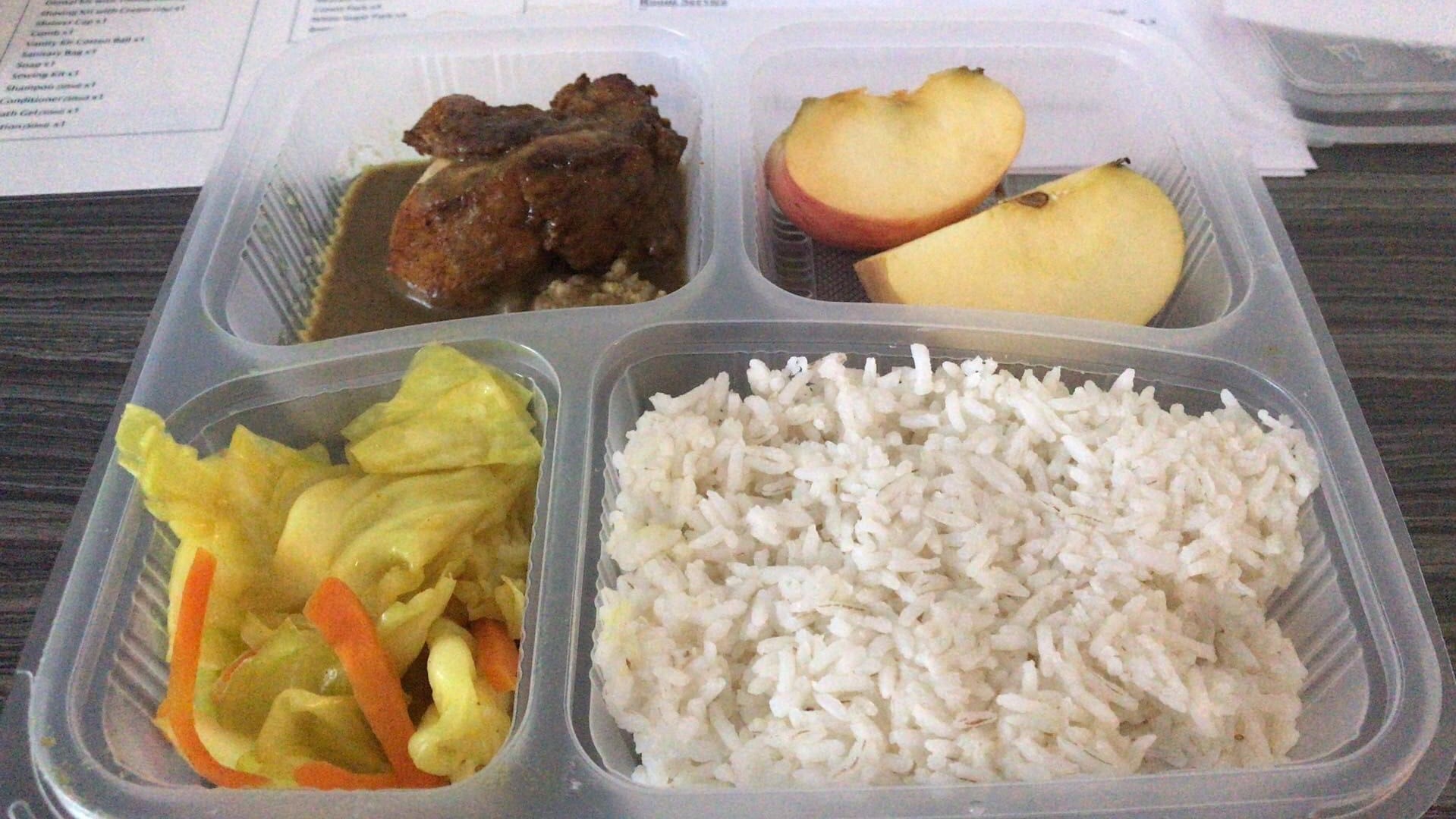 等了半小时,打开房门,我的几个邻居也开着门。我问他们是不是还没有晚餐,他们都说是,还没得到晚餐。有些还是孕妇小孩,他们和我一样,饿着肚子,也只是在飞机吃了一餐而已。