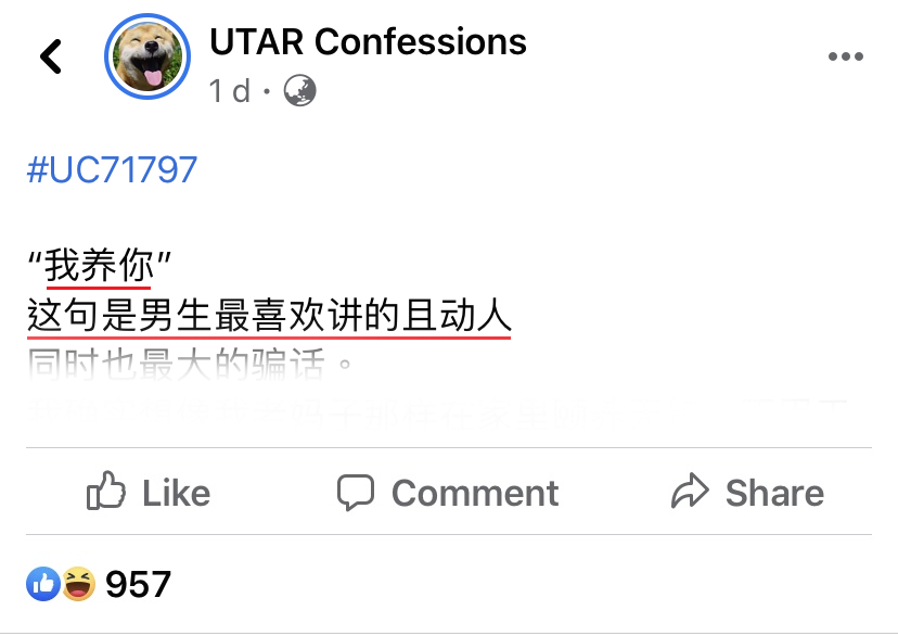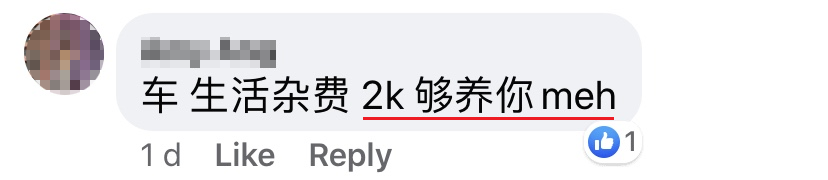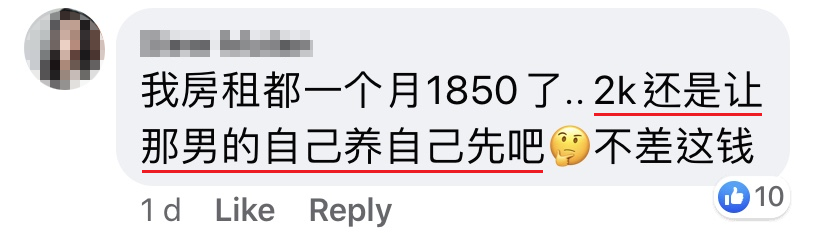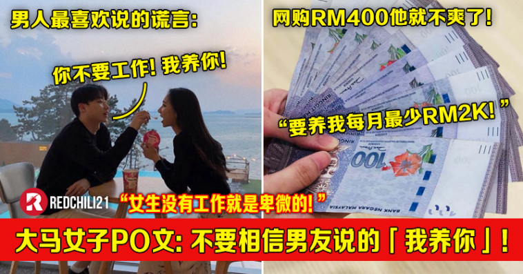 要养我,最少一个月RM2000,不包约会钱。否则,把「我养你」这句话收进肚子,不然老娘听见就火滚!