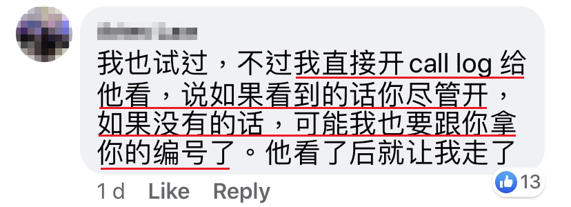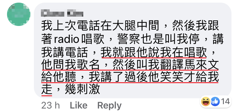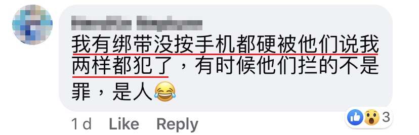 然后我们就被叫到马路旁停车,他就过来跟我男友拿 ic 和 lesen,我们就问他做什么,他讲我们滑手机。