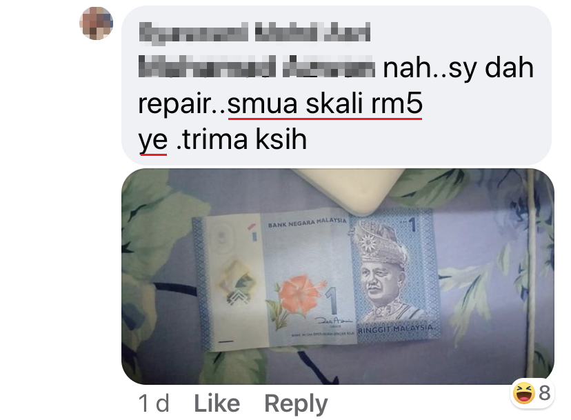 ▼ 修一张 RM1 付 RM8 的邮费,顾客也甘之如饴!