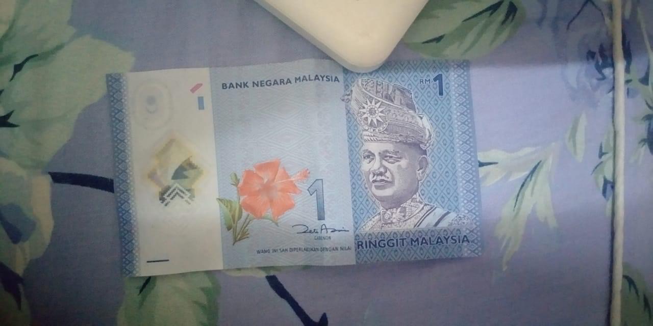 该大马男子日前通过面子书分享限时动态(Story),照片里有一张被撕裂的 RM1 钞票和一卷的透明粘纸。