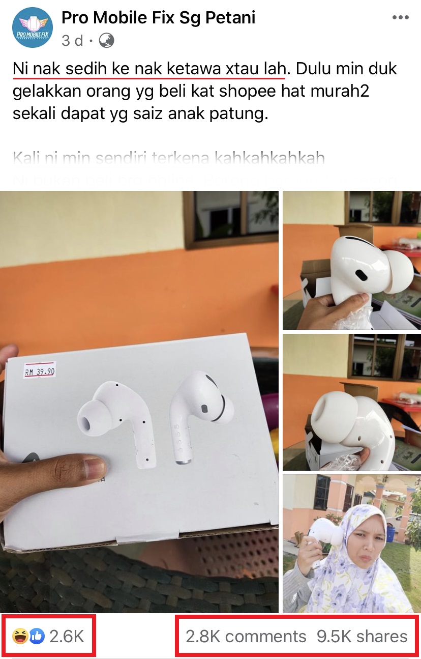 网购无线耳机结果收到的却是「Max版本」仅需RM39!网友们爆笑留言:这款叫作Airpod Pro Max!
