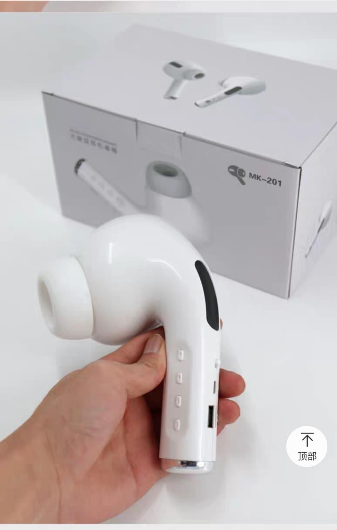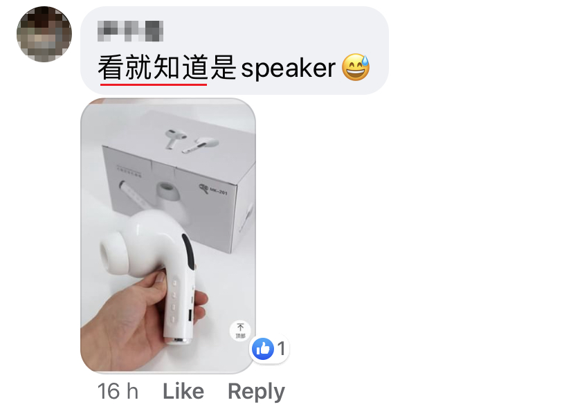 没想到收到货的时候她傻眼了!这款外观神似 Airpod 的商品竟然是巨无霸的size,根本塞不进耳朵!她赶紧查看商品资料才发现包装盒上写的是“巨大音响”(Giant speaker)。原来它不是耳机,是音响…
