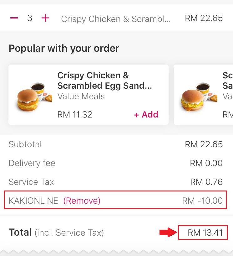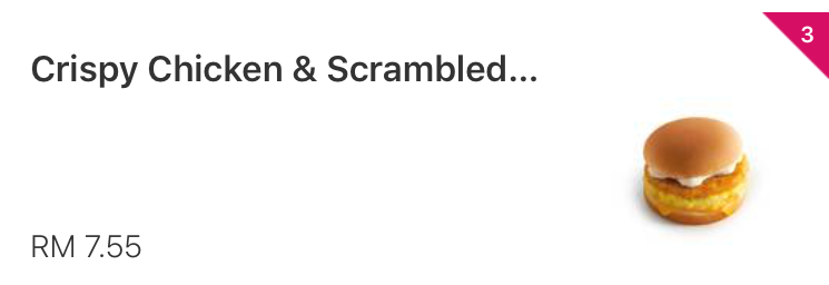 ※3x Crispy Chicken & Scrambled Egg 汉堡单点折扣RM10 后只需RM13.41