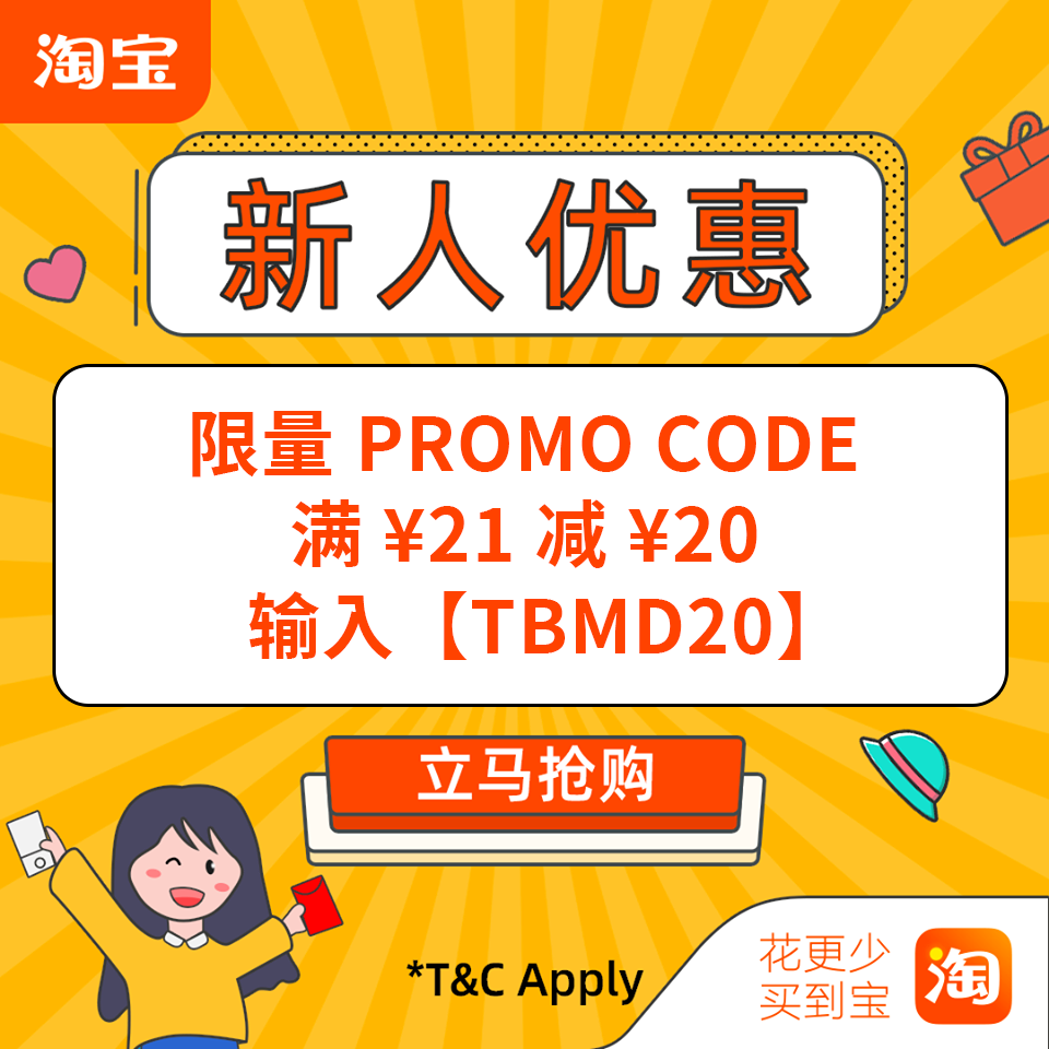 这次的大促淘宝也不忘了新用户,只需购满21元立减20元!意思就是说你的第一单淘宝只需要付1元罢了! 赶紧试试淘一淘吧~