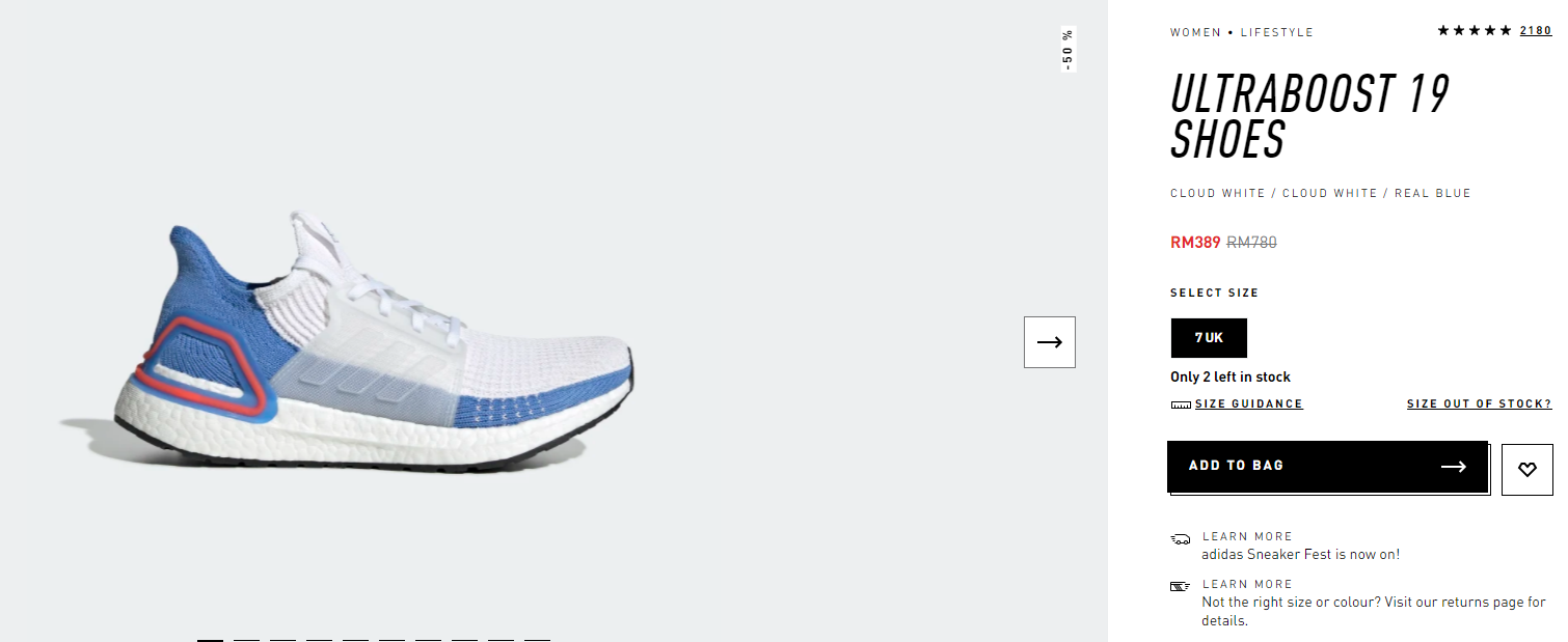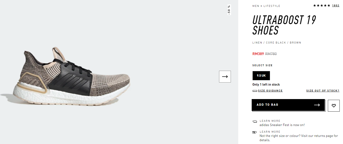 ▼ ULTRABOOST 19 SHOES 折扣50%—— 只需RM389(原价RM780)