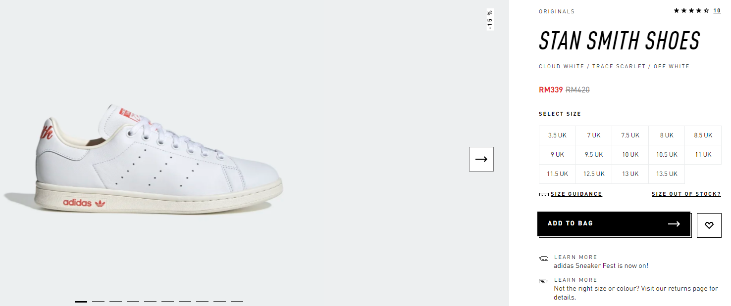 ▼ STAN SMITH SHOES 折扣15% —— 只需RM339(原价RM420)