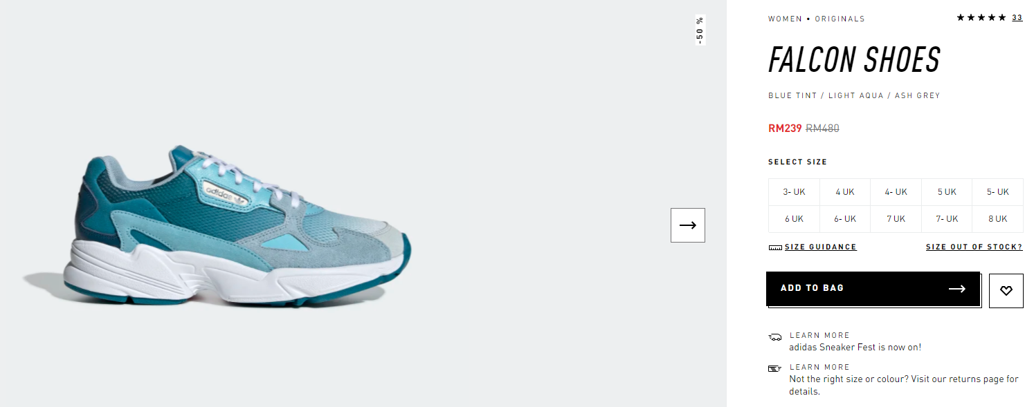 ▼ FALCON SHOES 折扣50%—— 只需RM239(原价RM480)