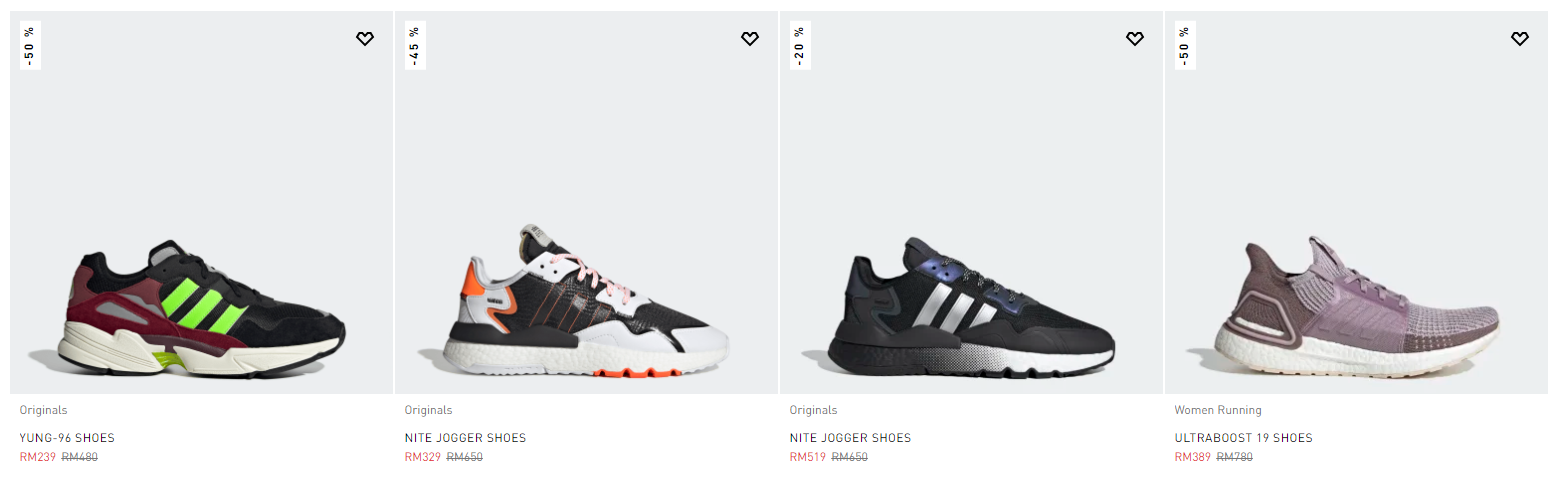 不过,这项优惠是在 Adidas 官方网店推出大促销!不管是 Ultraboost、Stan Smith、EQT、SuperStar 等等的运动鞋都享有折扣高达60%+40%特价优惠!