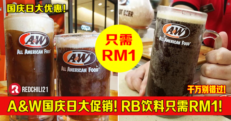 促销活动:A&W —— 国庆日优惠!RB 饮料(Regular)只需RM1