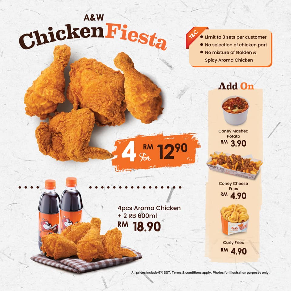 促销活动:A&W 推出炸鸡套餐,最低只需RM12.90!