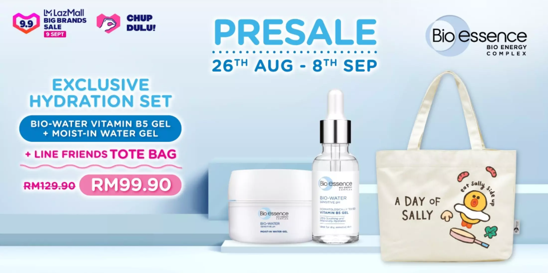 ▼ 还有还有~从即日起至9月9日先预购这款 Bio-Water Vitamin B5 Gel + Moist In Water Gel,可免费获得一个 Line Friends Tote Bag —— 售价为RM99.90