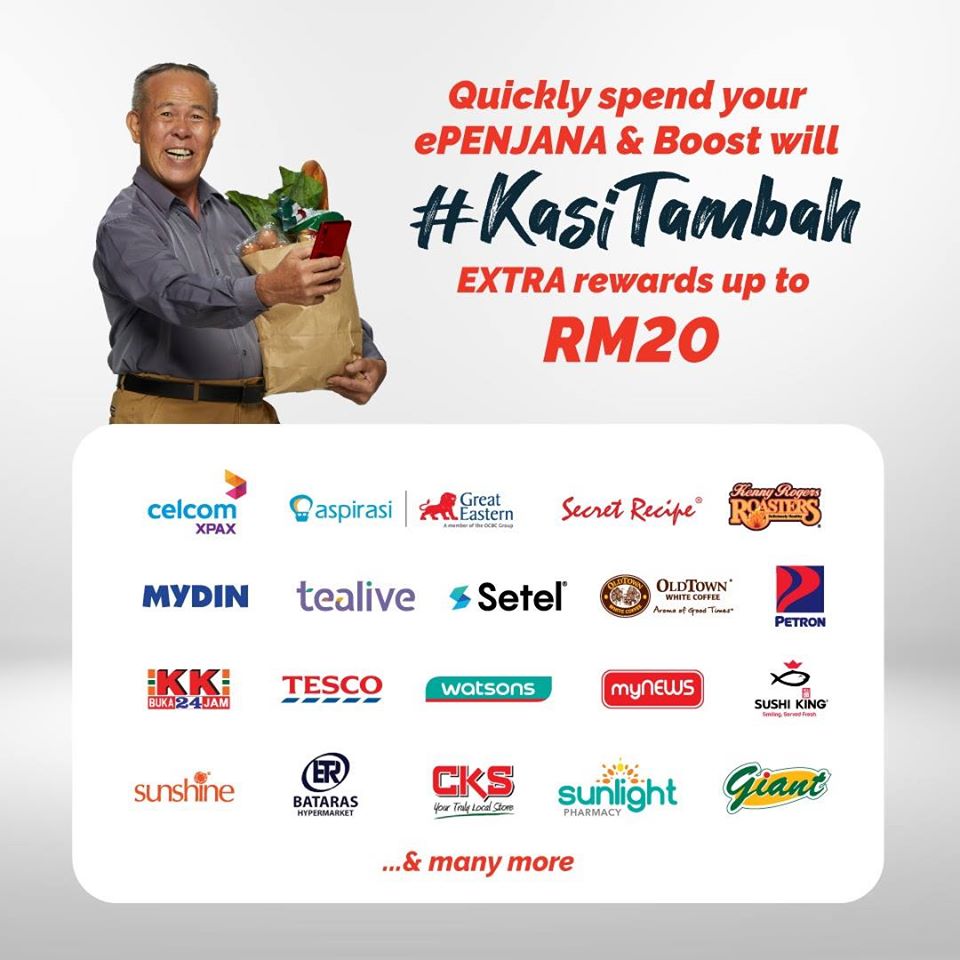 倘若你是通过 Boost 来获取 RM50 ePenjana 电子奖励,那可别忘了当你在这些商家消费时,可额外获得现金回扣哦!这样你就可省下更多钱啦!