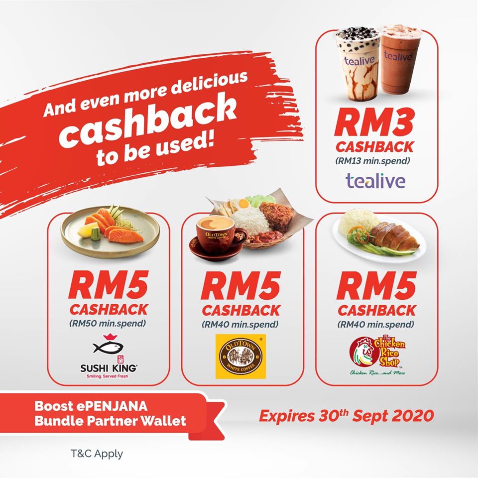• 通过Boost 领取 RM50 ePenjana,就可额外获取这些现金回扣优惠