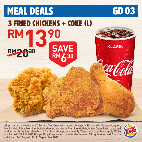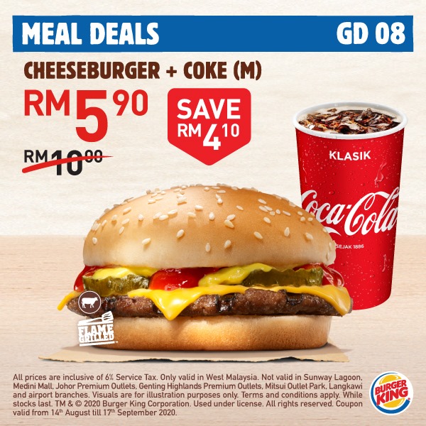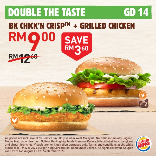 在这8月份,大马 Burger King 再次推出「20个美食优惠券」促销!汉堡套餐只需RM5.90,炸鸡套餐只需RM13.90!