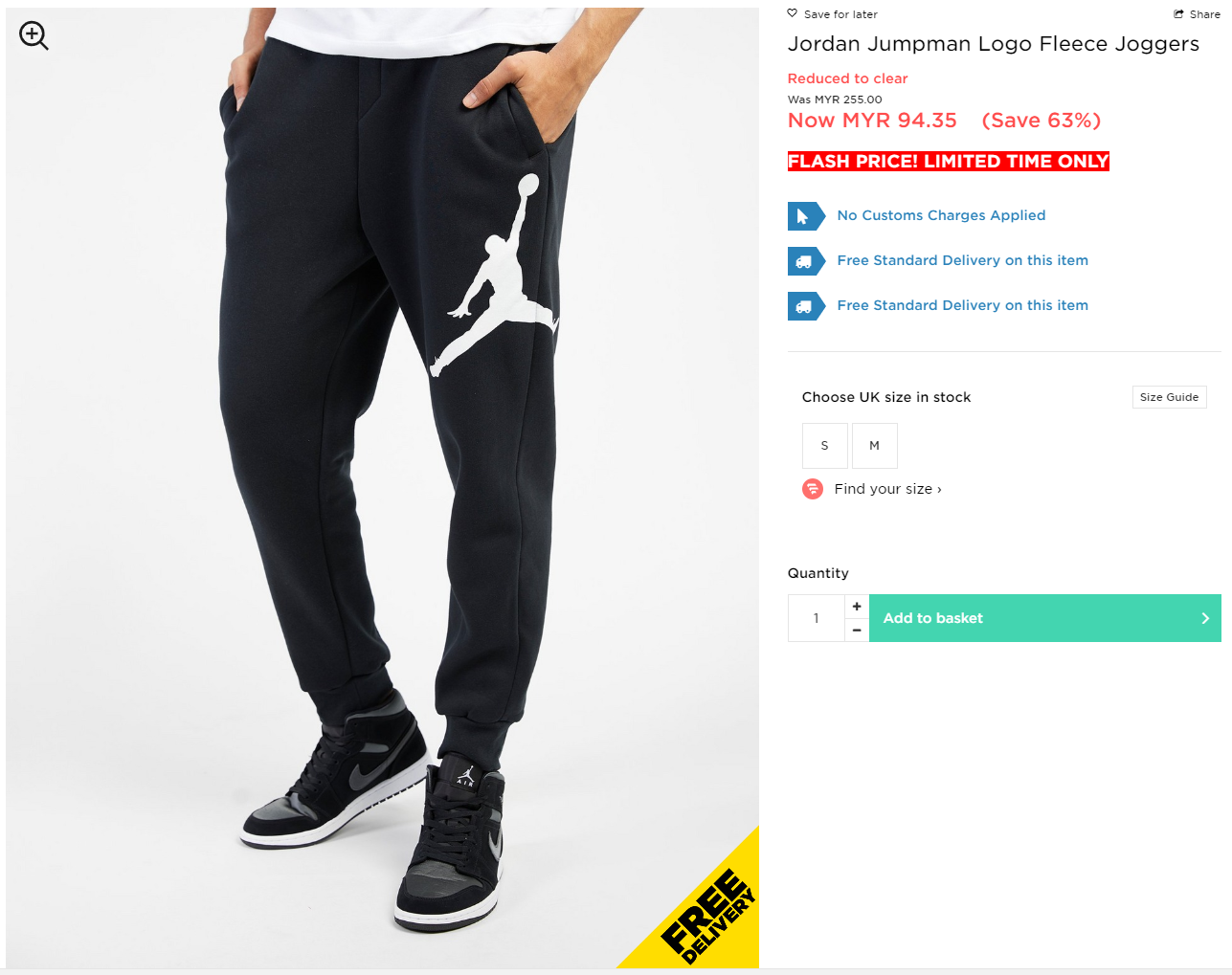 ▼ Jordan Jumpman Logo Fleece Joggers – 只需RM94.35(原价RM255)!