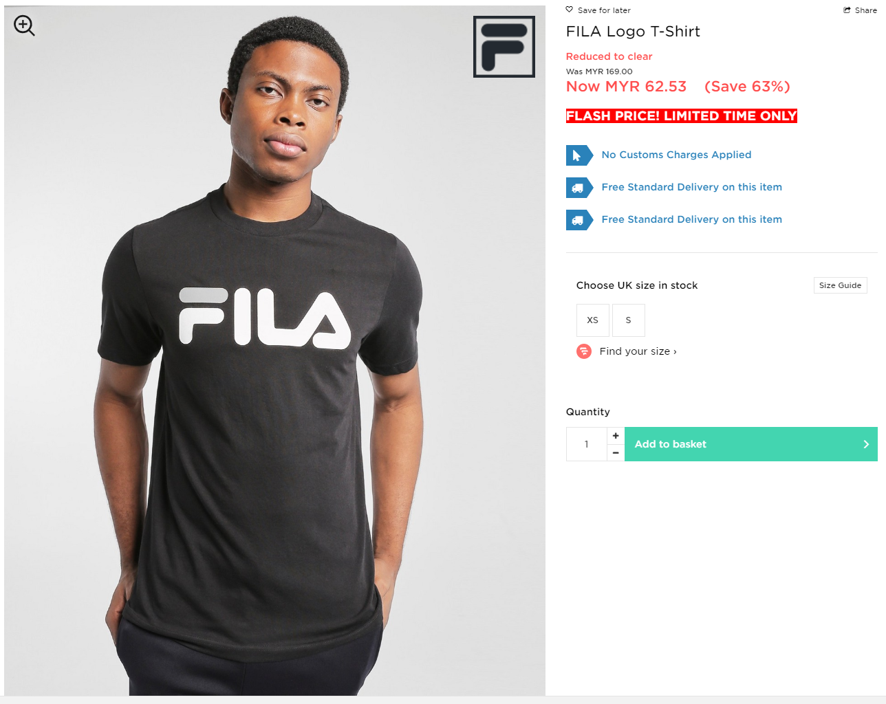 ▼ FILA Logo T-Shirt – 只需RM62.53(原价RM169)!