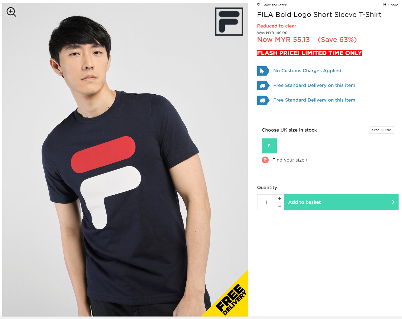 ▼ FILA Bold Logo Short Sleeve T-Shirt – 只需RM55.13(原价RM149)!
