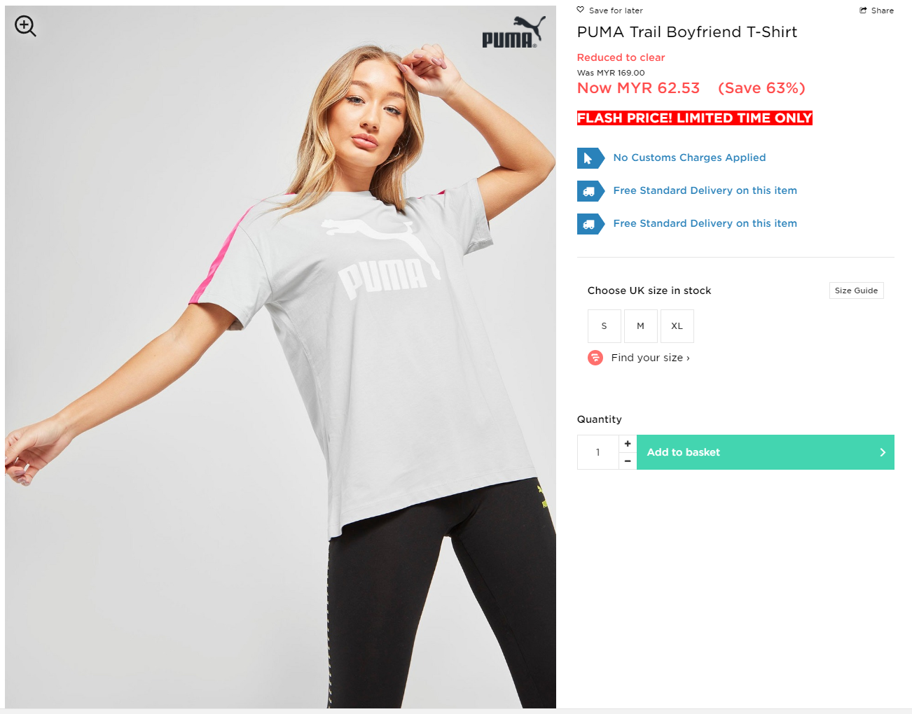 ▼PUMA Trail Boyfriend T-Shirt – 只需RM62.53(原价RM169)!