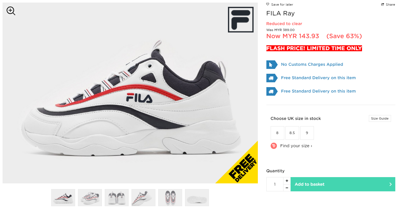 ▼ FILA Ray -只需RM143.93(原价RM389)