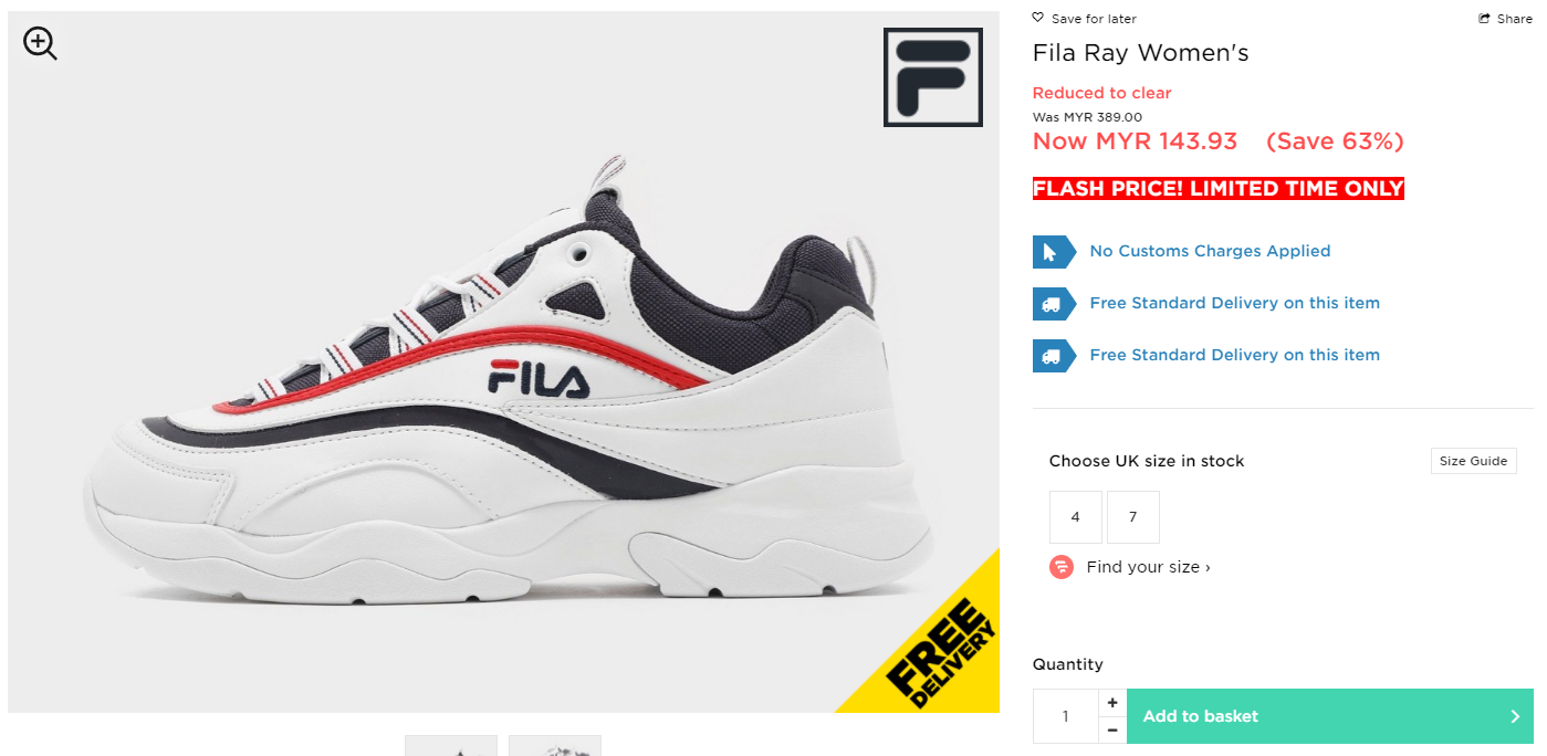 ▼ Fila Ray Women’s -只需RM143.93(原价 RM389)!